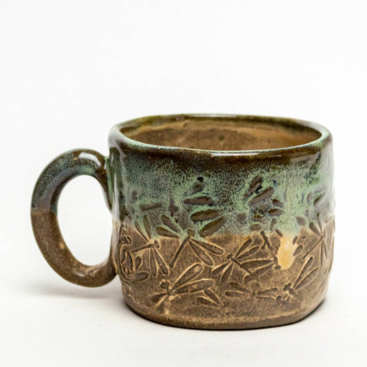 Green Dragonfly Pattern Handmade in Ohio Ceramic 10 oz Mug